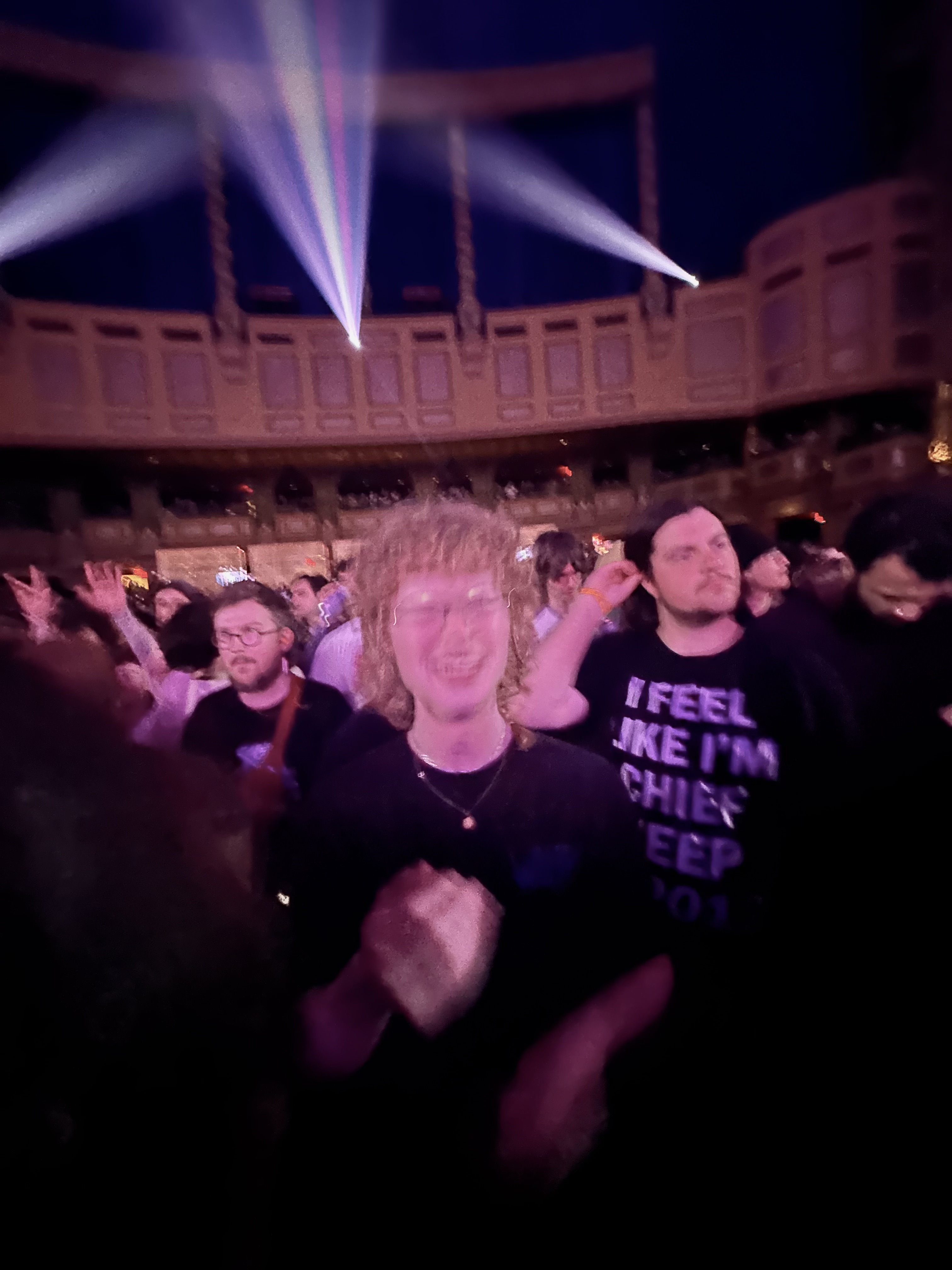 I actually have very little memory of everything leading up to walking into the Brooklyn Paramount, but the gorgeousness of it all felt like a come-to-consciousness moment. Carson and I looked around with cold feet—what were we supposed to do first? Everywhere we looked, there were other people we (parasocially) knew from the scene, as this was the event to be at. Carson and I eventually set up camp near Whirr’s merch stand as we proceeded to take in the moment and people-watch. The crowd had its fair share of youngin’s (including myself), however, most of the people there looked like they were active during Whirr’s heyday in the early 2010s. By active I mean going to shows, as many people had faded swirls somewhere on their body—many of which were most likely conceived in the back of Whirr’s tour van after a show by a guy named Schu. There was no shot of getting merch that night, for the end of the line was extending to different floors of the venue. Carson and I didn’t mind, in fact I bet there was nothing that could’ve brought us down from the high that night.