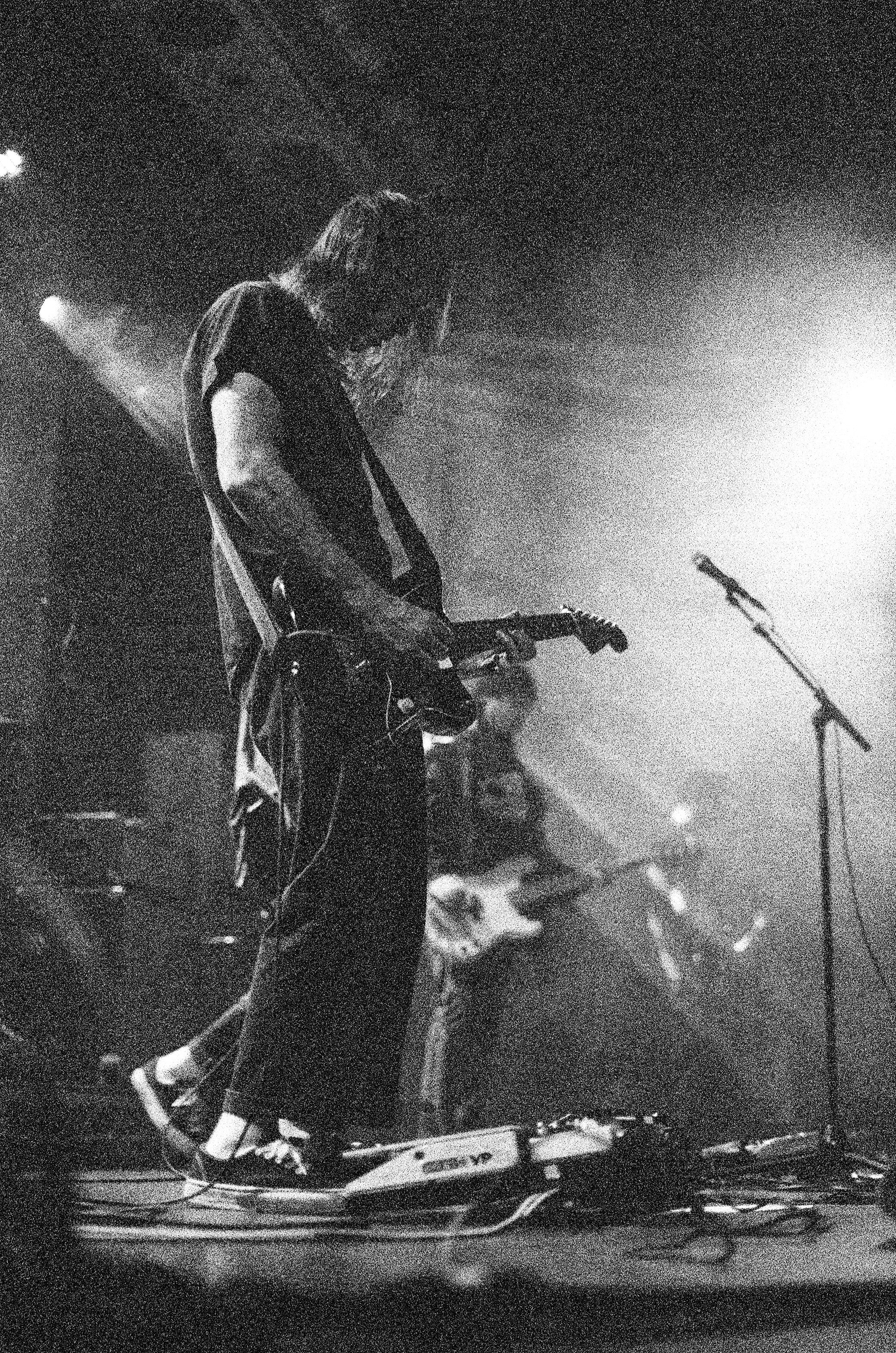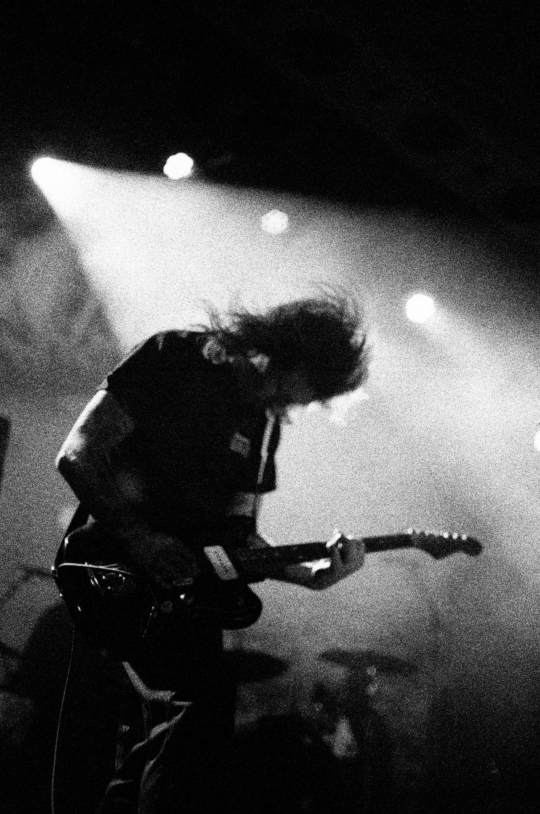 Eventually, the room went black once more, the music cut out, and they finally walked out. The eruption from the crowd was absolutely primal, actually it was almost ancestral the way I bellowed out a roar when I saw them all walk out. The silence that followed was often interrupted by trademark “Free Whirl” shouts and other impulsive, emphatic cheering. Along with the original 5 members of Whirr was newcomer Brian Busch, a friend of the band who found himself beside a handful of different trinkets—most notably a keyboard. It was that keyboard that uttered the first chord to “Mellow,” a chord that, in that moment, wafted over the crowd like shots of heroin and adrenaline. It also shot the lights on, which as you would expect sent myself and the rest of the crowd into another frenzy. Playing “Mellow” was no surprise to Carson and I, as we had seen a snippet of their setlist on Instagram; nonetheless as that first chord was played we reacted the same. We just couldn’t believe it was actually happening. Looking around at each member, I still wasn’t fully convinced that they weren’t some kind of hologram or illusion. The slowed, reverb-drenched chords of the piano were sinking into me through the gasps and jitters of the people around me. Right before I was about to get fully mesmerized, Carson looked at me and said “Devin’s about to play this shit like Bongos,” then BAM—it was like getting a 12-guage to the chest.